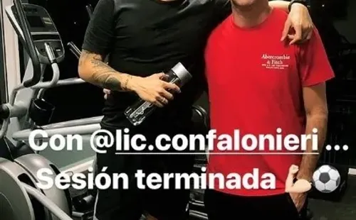 Está en Miami, pero conEnrique Confalonieri, kinesiólogodel club argentino, trabaja todos los días en sus ligamentos, y también para no perder la forma.