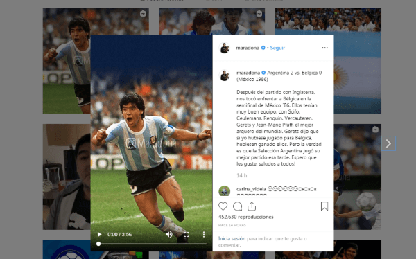 Su magia para jugar al fútbol llegó a todo el mundo. Hoy, el crack subió un video a Instagramrecordando su duelo ante Bélgica en el Mundial de México.