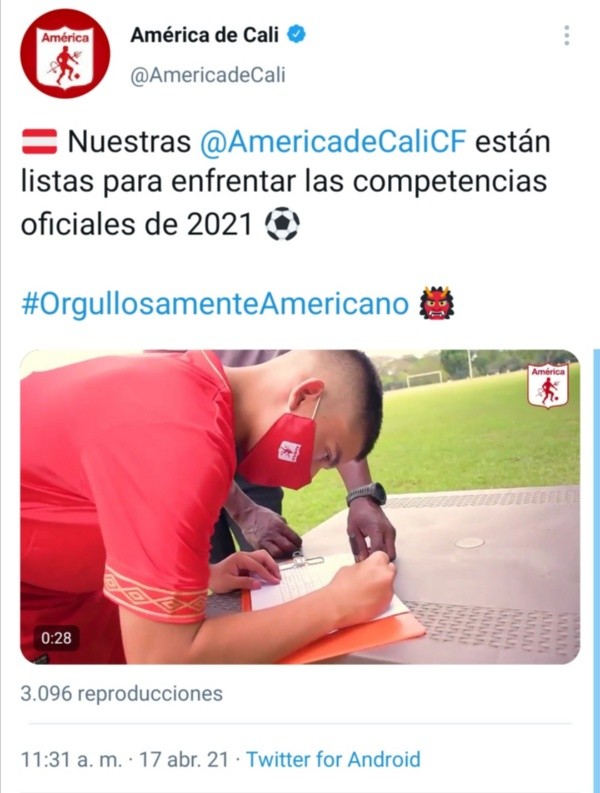 Finalmente, el actual Bicampeón del Fútbol Profesional Colombiano terminó cumpliendo su promesa, pues en las últimas horas, América de Cali, por medio de un video en sus redes sociales, mostró la entrega de la indumentaria 2021 y sus categorías de formación, pues los juveniles estaban utilizando indumentaria del 2019.