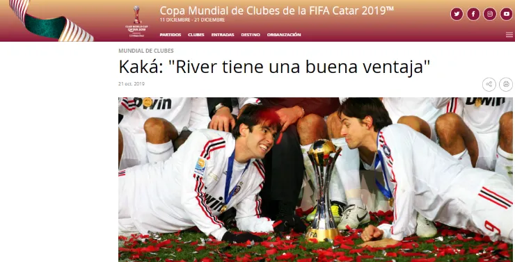 En diálogo con la página oficial de la FIFA, Kaká, una de las estrellas más destacadas de la historia del fútbol, palpitó lo que será un nuevo Superclásico copero entre River y Boca.