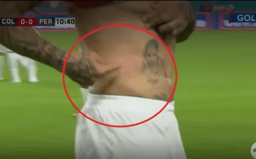 Esta vez, en el juego de este viernes, al parecer con quien la agarró el peruano fue con Yerry Mina y acusó al defensor de haberle rasguñado parte de su abdomen.