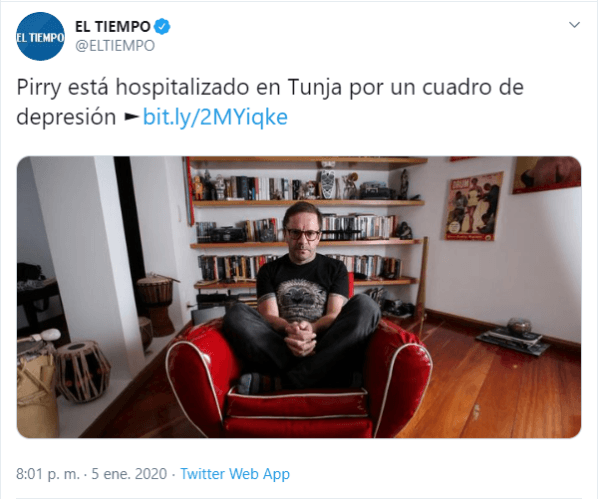 Desde el pasado 4 de enero, el periodista se encuentra hospitalizado luego que su diagnóstico inicial arrojara un cuadro depresivo. Así lo informó el propio centro asistencial por medio de un comunicado de prensa donde confirmaban el ingreso de ‘Pirry’ al Hospital.