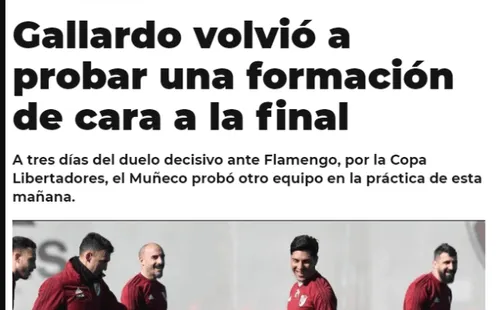 A pocos días de la final de Copa Libertadores ante Flamengo, Marcelo Gallardo trabaja intensivamente para ajustar las últimas piezas y llegar al compromiso copero de la mejor manera.