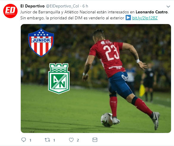 Hasta ahí, la información parece verídica y Nacional sí se habría interesado por vestir a Leo Castro de verde. Sin embargo, en Medellín quieren venderlo y el precio por su ficha es demasiado elevado.