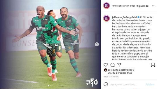 Tras el encuentro, Jefferson compartió un motivo mensaje en su cuenta de Instagram: “El fútbol te da de todo. Momentos duros como las lesiones y las derrotas sufridas. Pero también te da momentos hermosos como volver a jugar por el equipo de tus amores después de tanto tiempo y apoyar en el triunfo con gol incluido”.