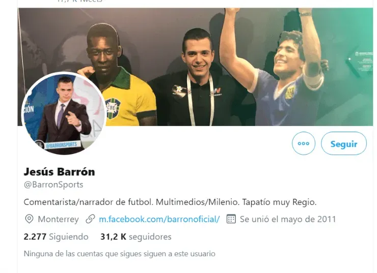 Según menciona en su perfil de Twitter, se trata deun comentarista y narrador de fútbol en México.