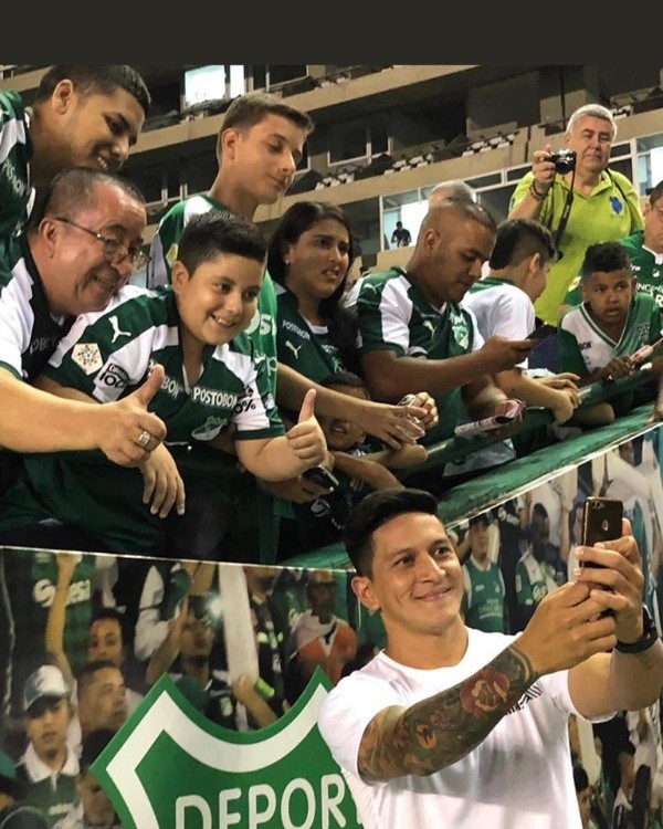 No se sabe exactamente en qué momento ocurrió, pero ya se hizo viral la imagen en la que aparece Germán Ezequiel Cano ayudando a los fanáticos del Deportivo Cali tomarse la ‘selfie’ con él.