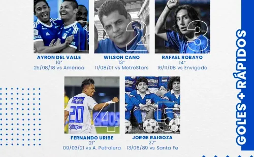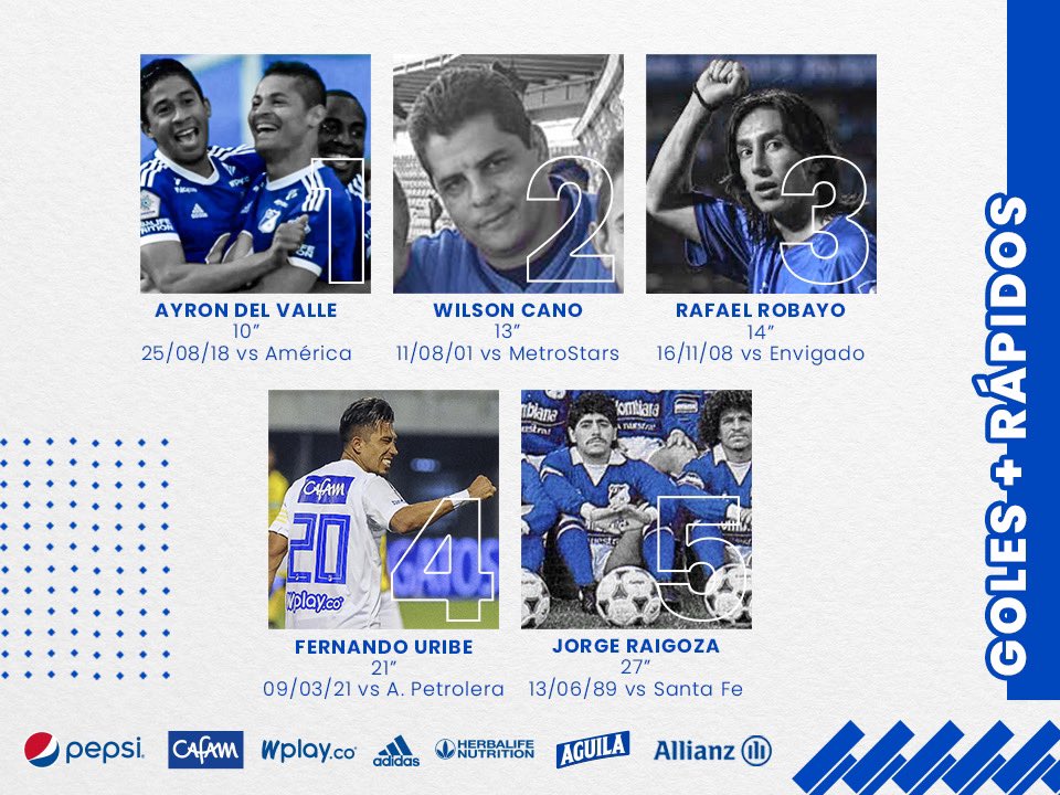 Luego del gol tempranero de Fernando Uribe frente a Alianza Petrolera, el listado de los goles más rápidos en la historia de Millonarios se volvió a abrir, pues hace un par de años, el encargado de desempolvarlo fue el delantero Ayron Del Valle.