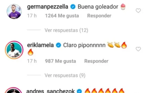 En los comentarios, sus excompañeros de River lo felicitaron por su actuación en el amistoso con mucha buena onda.