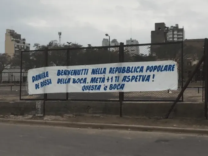 “Daniele de Rossi, bienvenido a la república popular de la boca. La mitad más uno te espera. ¡Esto es Boca!”, se puede leer en italiano.