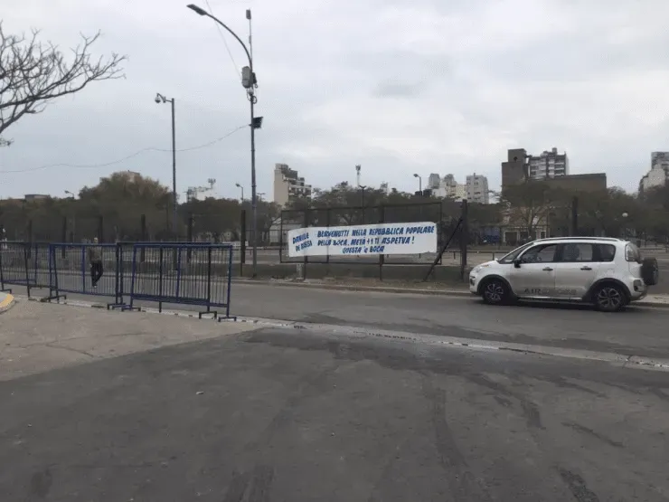 Esta tarde apareció colgada una bandera en la puerta de Casa Amarilla con un claro mensaje para el futbolista de Italia.