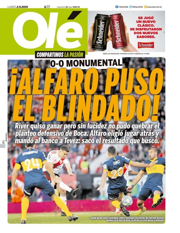 En este contexto, fue la tapa de Diario Olé la que generó distintas sensaciones en los fanáticos de ambos equipos.