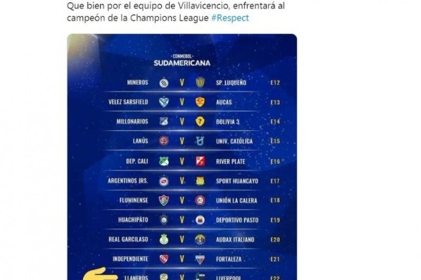 Del otro lado, en la Copa Sudamericana, Atlético Nacional jugará contra Huracán, Millonarios lo hará frente al tercer clasificado de Bolivia, al Deportivo Cali le correspondió el River Plate de Paraguay y Deportivo Pasto se enfrentará a Huachipato de Chile.