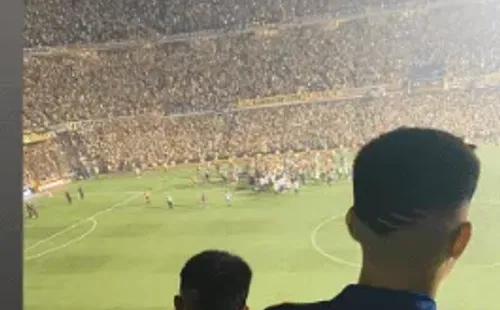 La segunda es una imagen de la tribuna, en plena ebullición, mientras que en pantalla gigante se puede leer que “Boca está feliz”.