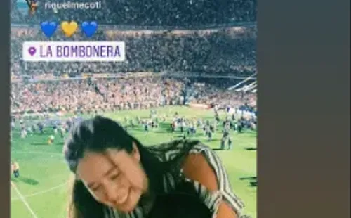 En la primera de ellas se puede ver a su hermano Agustín, de espaldas, con la camiseta de papá Román, y a su primo Matías con la de Pol Fernández; ambos viendo a los futbolistas del Xeneize festejando en el terreno de juego.