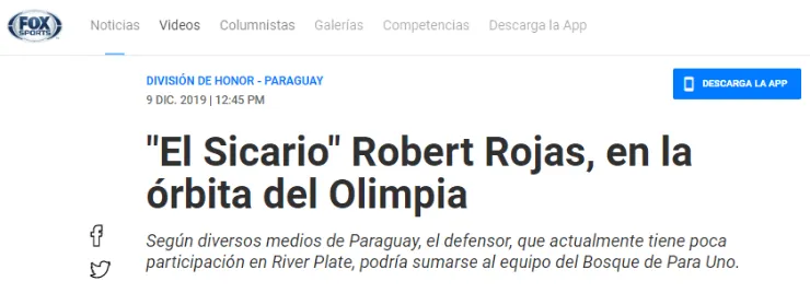 Sin mucho protagonismo a la hora de defender los colores de La Banda, FOX Sports detalló a través de su sitio web que desde Paraguay vendrían a la carga por Rojas.