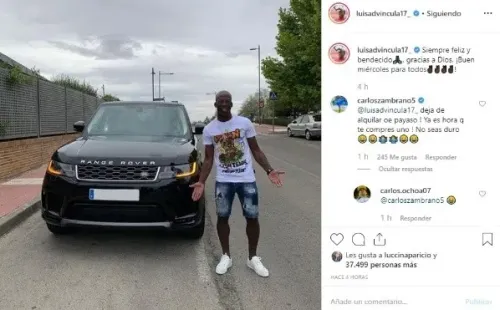 En esta publicación, el comentario de Zambrano en tono de joda no se hizo esperar. “Deja de alquilar oe payaso ! Ya es hora q te compres uno ! No seas duro”, respondió el defensor en relación a los gastos de Bolt.