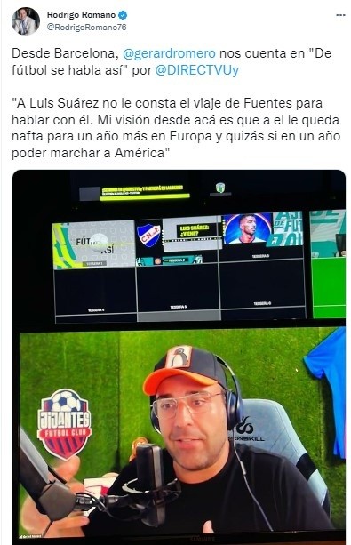 En las últimas horas, se ha dado varia información del viaje de José Fuentes, presidente del Bolso a tierras españolas; se dice que a hablar con Suárez, sin embargo, el comunicador anteriormente mencionado señaló: “a Luis Suárez no le consta el viaje de Fuentes para hablar con él”.