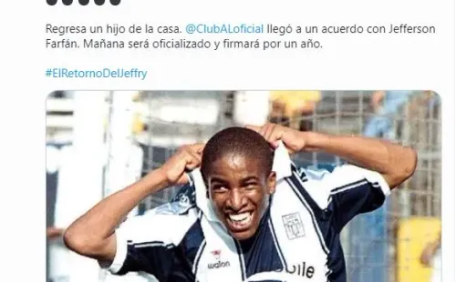 De hacerse oficial la llegada de Jefferson Farfán a Alianza Lima, estaría retornando a La Victoria luego de 17 años. La última temporada de la Foquita en el equipo íntimo fue el 2004, cuando tuvo que irse al PSV fechas antes de que el club gane el Torneo Apertura.