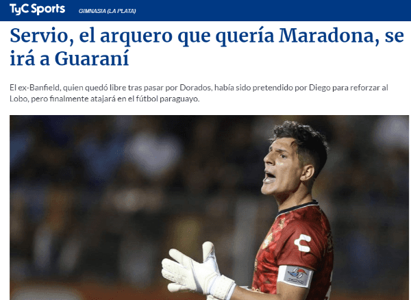 Pero a última hora todo cambio, Servio ya tiene nuevo club y no es el de La Plata. El ex-Arsenal tiene un acuerdo de palabra para sumarse a Guarani de Paraguay.