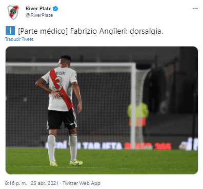 Consumado el partido, todos los temores y malestares de los fanáticos de La Banda fasaron a transformarse en una gran preocupación. Saciando la inquietud de sus hinchas, la cuenta oficial de River, a poco de culminar el cotejo, publicó un pequeño parte médico relacionado a Angileri.