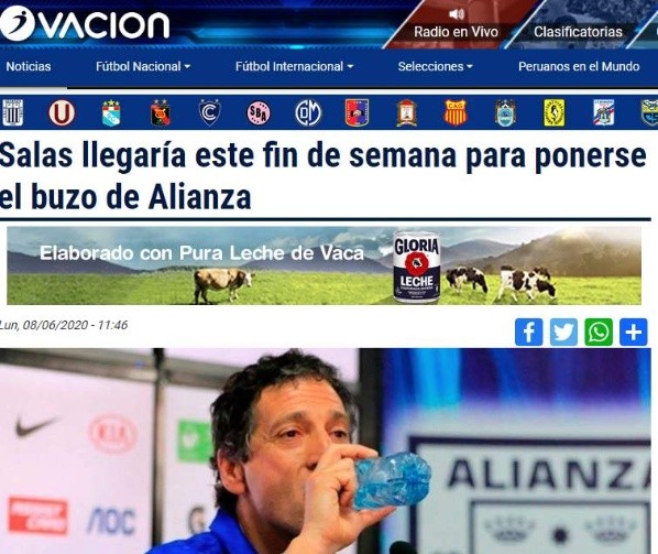 Y es que según Radio Ovación “Salas llegaría este fin de semana para ponerse el buzo de Alianza”. “La administración del club blanquiazul venía haciendo las gestiones del caso para la llegada del estratega chileno a nuestro país y todo apunta que esta semana podría conseguir su objetivo”, detallan.