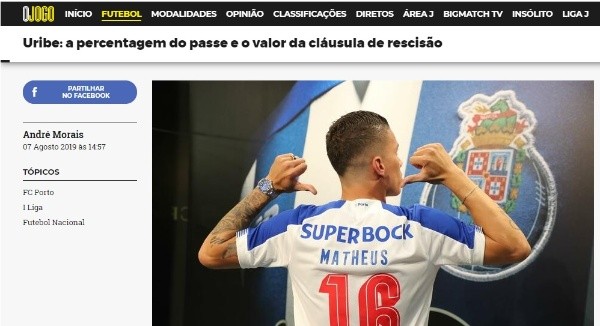 O Jogo hace énfasis también en que el club portugués no tiene completos los derechos deportivos de Mateus.