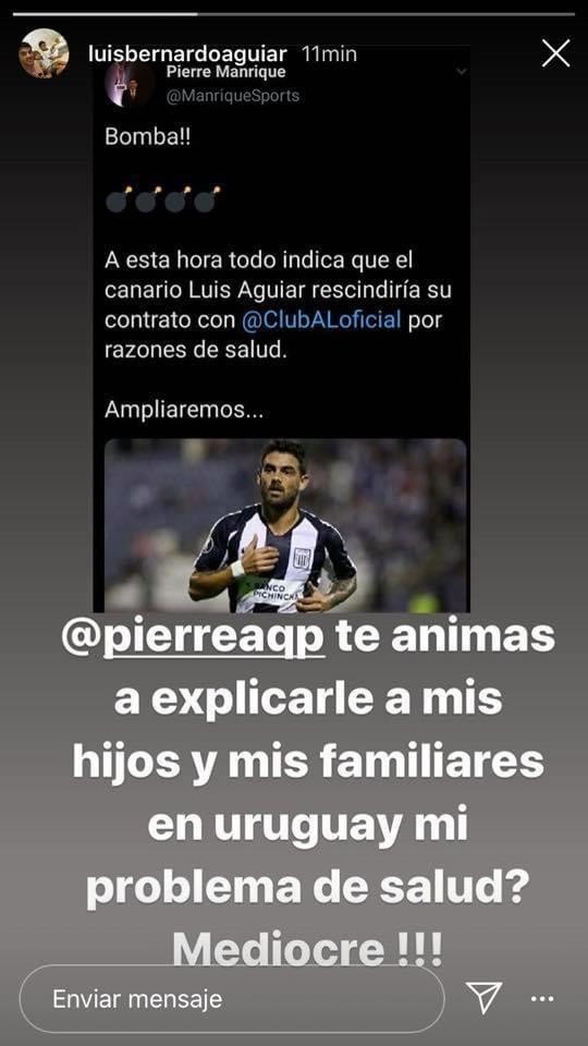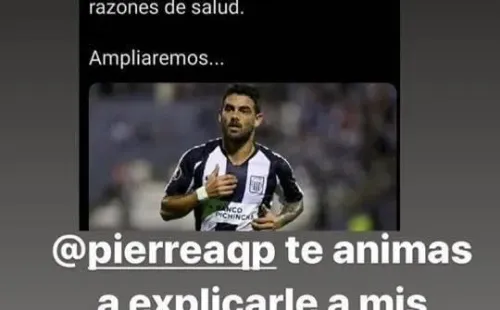 Al leer esto, el jugador se volvió loco en Instagram: “Pierre ¿te animas a explicarle a mis hijos y familiares en Uruguay mi problema de salud? Mediocre”.