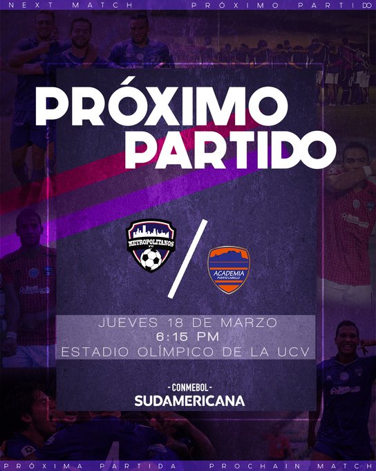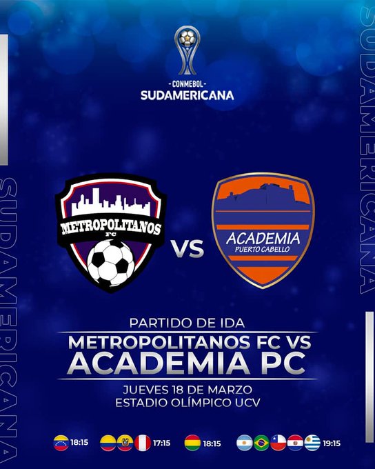 Por el duelo de ida de la primera fase de laCopa Sudamericana,Metropolitanosrecibe ala Academia Puerto Cabelloen un emparejamiento que se realizará este jueves18de marzo. El juego será transmitidoEN VIVO Y EN DIRECTOa través de la señal deDIRECTV Sports (610-619).