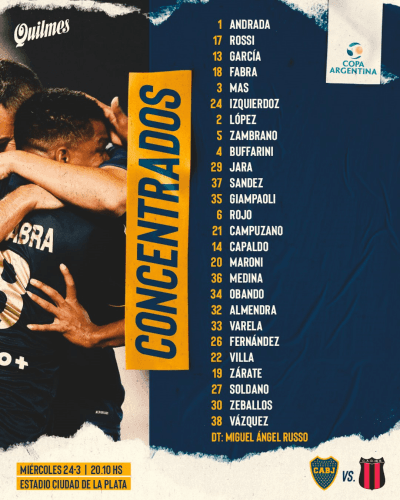 A poco más de 24 horas de medirse ante el equipo de la Primera Nacional, Miguel Ángel Russo entregó la lista de concentrados y el club de la Ribera lo hizo público en sus redes sociales. En total, hay 26 futbolistas que estarán a disposición del entrenador en el Estadio Único de La Plata.