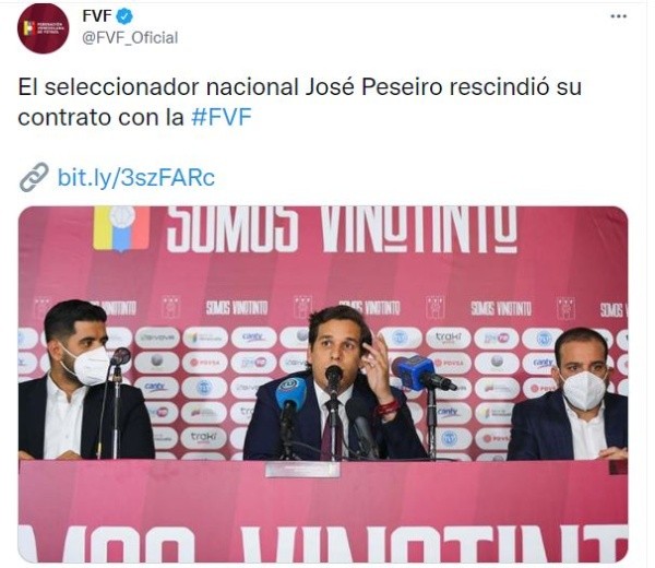 Cabe recordar que a falta de días para una nueva fecha FIFA de Eliminatorias mundialistas, el equipo nacional de Venezuela no tiene entrenador y, para la triple jornada a disputarse el 2, 5 y 9 de septiembre, habrá un entrenador interino. La Vinotinto enfrentará a Argentina, Perú y Paraguay, en los compromisos del camino a Qatar 2022.