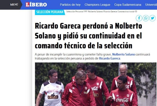 Aseguraron que Ñol continuará en el cargo nada menos que por pedido de Gareca. Del mencionado medio citaron una declaración de Oblitas:“Nolberto se ha reunido tres o cuatro veces con Agustín Lozano. Lo único que puedo decir es que Solano sigue siendo parte del comando técnico”.