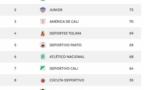 Las cuatro últimas jornadas en las que el cuadro albiazul no ha podido ganar, sumando solo un punto de 12 posibles, les ha permitido a sus rivales acercarse. El más próximo es Junior de Barranquilla, a solo 4 unidades, mientras que América de Cali le sigue a 7.