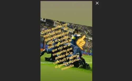 “Quizás anoche me expresé mal, no quise generalizar nada ni a nadie. Sino comentar lo que viví en el momento que estaba en la cancha. Perdón si generé alguna molestia”, manifestó el futbolista.