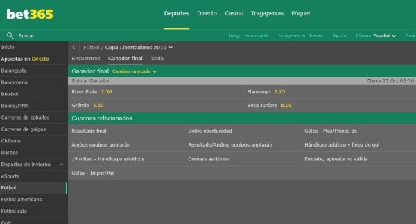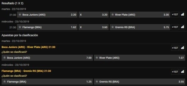 Una referencia es el sitio Bwin, donde una clasificación de la formación Xeneize paga nada más ni nada menos que 7 pesos, mientras que la de River solamente 1.07.