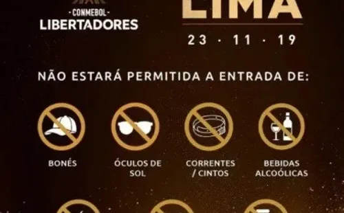 La Confederación publicó una imagen con siete prohibiciones, algunas insólitas, para el encuentro en el Monumental de Perú.