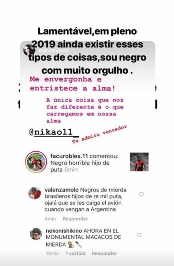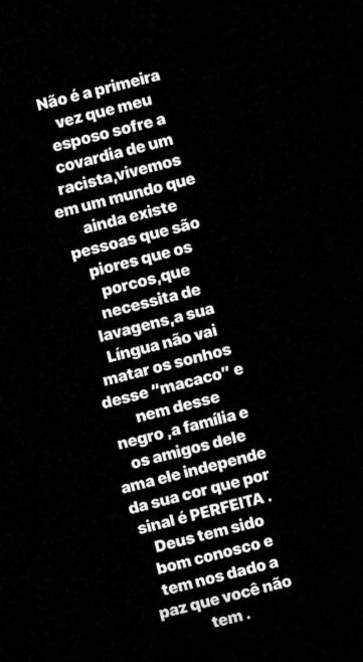 “Es lamentable que en 2019 todavía existan estas cosas. Soy negro con mucho orgullo. No existe problema en la palabra negro, el problema está en quien la lanza. Ese negro es un orgullo para su familia por su fe y carácter”, explicó.
