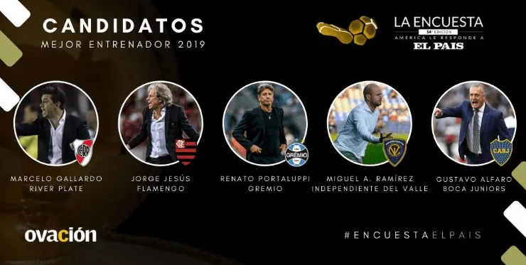 Compite con Marcelo Gallardo (River), Jorge Jesús (Flamengo), Renato Portaluppi (Gremio) y Miguel Ángel Ramírez (Independiente del Valle).