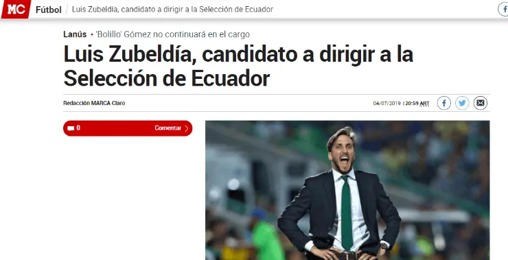 En esta oportunidad, un nuevo argentino apareció en el radar de La Tri:Luis Zubeldía (hoy en día comandando a Lanús en la Superliga Argentina). El compatriota del DT de Santos (Santos), cuenta con el plus de haber estado en el fútbol ecuatoriano y haber dirigido aBarcelona y Liga de Quito (acumuló más de 200 partidos).