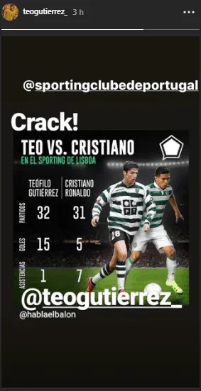 A través de su cuenta de Instagram, el oriundo de Barranquilla replicó y citó una comparación de sus estadísticas en la institución de Lisboa con nada más ni nada menos que los de Cristiano Ronaldo.