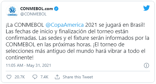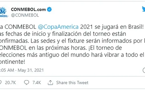 La organización de la Copa América tomó un giro inesperado y, de la noche a la mañana (literalmente), se confirmó que Brasil será el anfitrión. La difícil situación sanitaria en Argentina terminó generando que el torneo cambiara de sede. Aún no se definió el calendario ni las sedes.