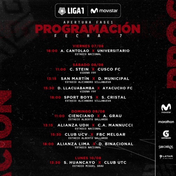 Se confirmó, entonces, que la Liga 1 volvería el fin de semana del 7 de agosto. Este jueves, en linea con esta información, se confirmó la programación de aquella fecha 7 que tanto se hizo esperar.