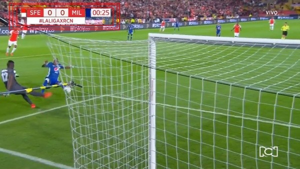 Solo habían pasado 9segundos desde que el árbitro del clásico capitalino había decretado el inicio del juego. El saque lo ejecutó Santa Fe, pero casi le inauguran el arco con un “gol de vestuario”.