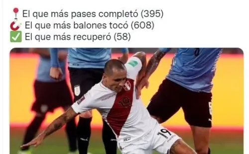 El mediocampo peruano está bien cubierto con Yoshimar Yotún, el peruano es alma y eje del equipo Inca, debido a que es el jugador que más pases completó, un total de 395 asistencias dio para sus compañeros a lo largo y ancho del terreno de jugo.