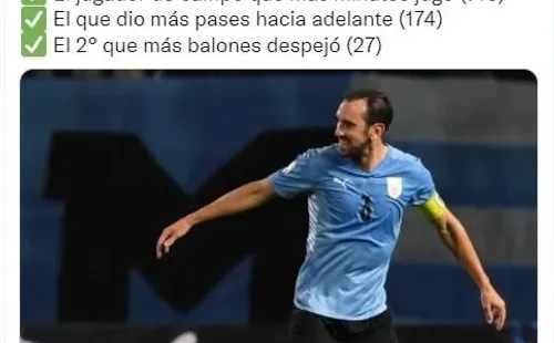 Una de las fichas inamovibles de Uruguay es el capitán Diego Godín (lesionado), el defensa central de Cagliari se da el lujo de haber disputado 715 minutos vestido con la camiseta Celeste. El zaguero fue el segundo jugador que más balones despejó en su equipo, un total de 27.