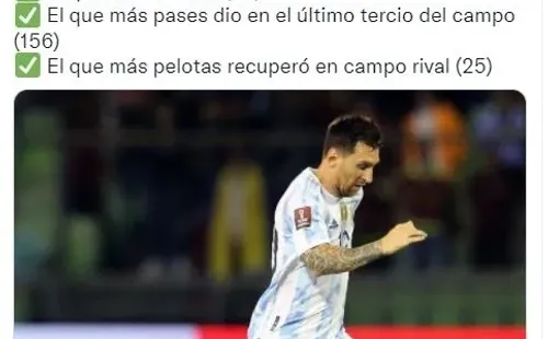 El primero en tener espacio en las redes sociales de la Conmebol fue el astro argentino, quien se destaca por ser el futbolista de su selección con más hambre de gol, ya que remató 28 veces a arco rival. Además, por su velocidad, fue el que más pelota recuperó en arco rival; lo hizo en 25 ocasiones.
