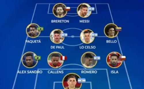 Mediocampistas: Alexander Bello (Venzuela), Giovani Lo Celso, Rodrigo de Paul (Argentina), Lucas Paquetá (Brasil)