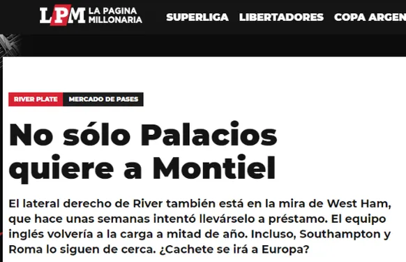 Según reportó La Página Millonaria, el Bayer Leverkusen no sería la única institución tras los pasos del defensor. Sumándose al West Ham, elenco que hace unas semanas acercó a Núñez una pequeña propuesta para llevarse al jugador,Southampton y Roma también estarían en cola para quedarse con Montiel.