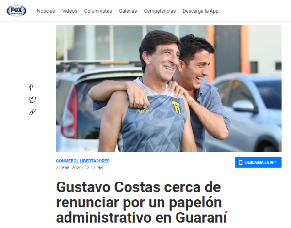 Un hecho insólito se vivió en Guaraní de Paraguay previo al inicio de su participación en la Copa Libertadores. El acontecimiento provocó ya una renuncia y puso además en riesgo la continuidad del entrenador argentino Gustavo Costas.