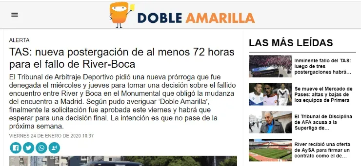 Pese a que todo indicaba que elTribunal de Arbitraje Deportivo emitiría este viernes la tan esperada resolución final, Doble Amarilla indicó que, una vez más, el ente postergó el fallo decisivo.